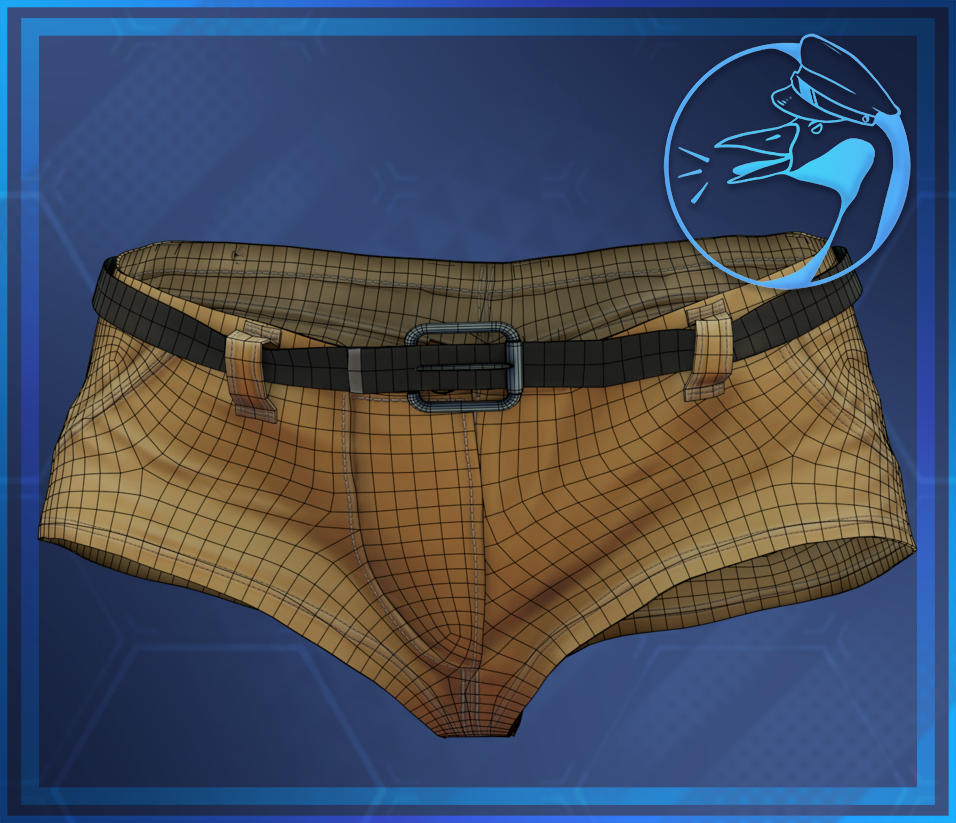 A pair of tight fitting khaki shorts with some stylized texturing. Includes Commercial license.