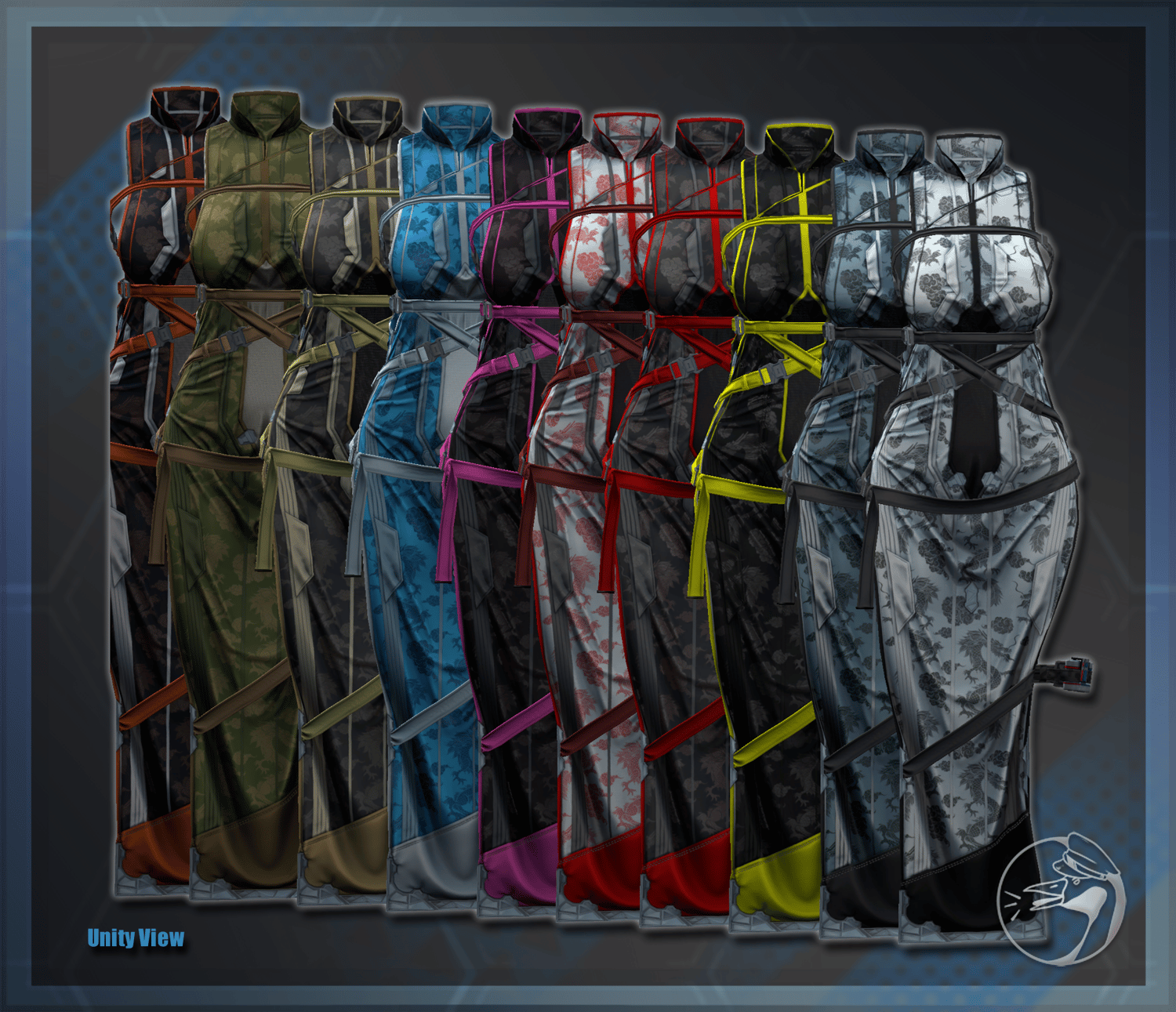 4k Textures: 11 Color, Normal OpenGL, Ambient Occlusion, Metallic, 2 Position gradients, 2 Combined shading maps for Poiyomi, Reflection, RGBA Mask, Smoothness, Specular level, Specular Tint Map, 4 Tilable 1k normals for use in RGBA, Anistropy